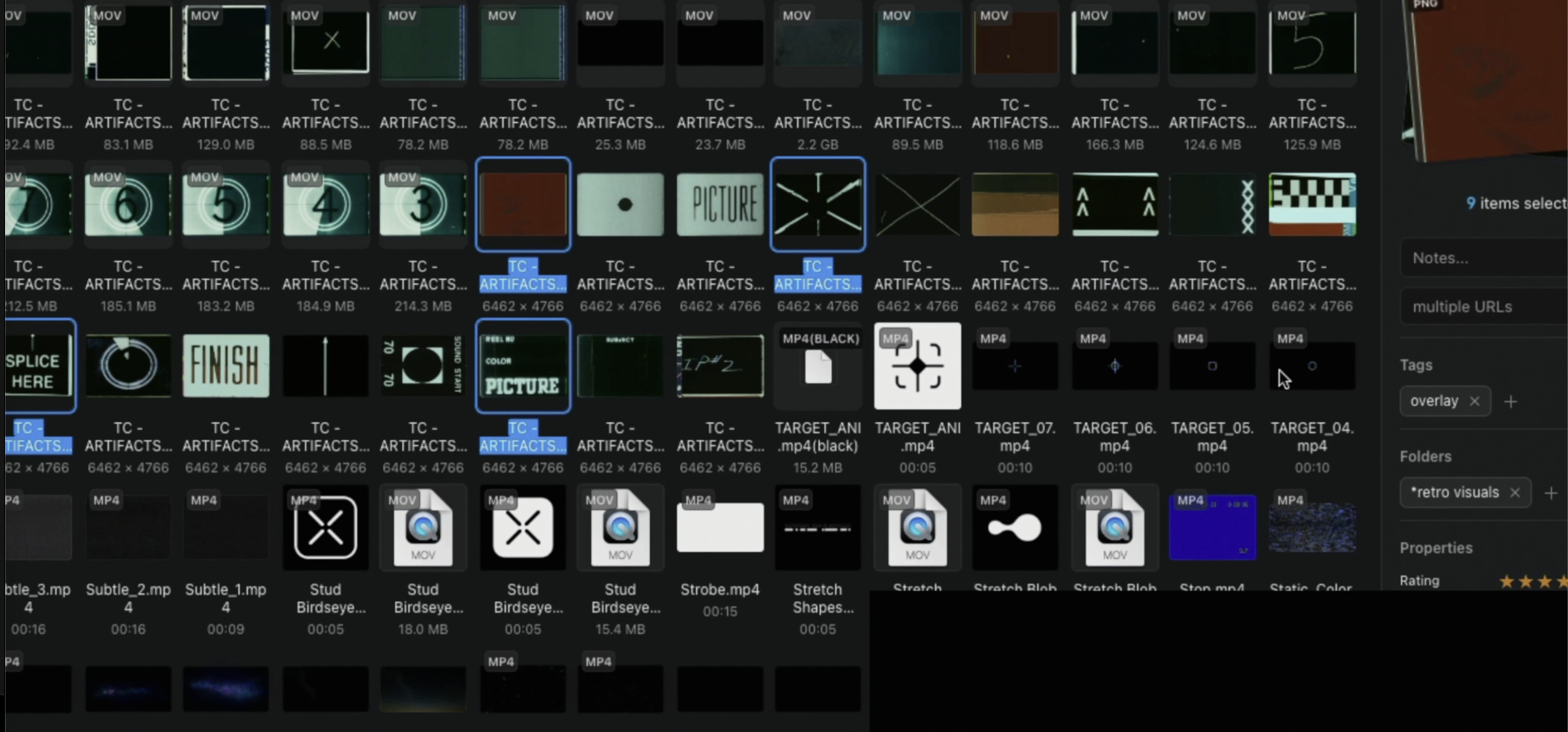 To add depth and engagement to the video, I incorporate assets like film burns and vintage effects. For efficient management, I rely on Eagle Software, a dedicated viewer that stores all my assets in one place. Unlike using Finder, Eagle allows tagging, starring, and advanced categorization, enabling quick access and drag-and-drop integration into the timeline. This streamlines the creative process, especially for videographers handling numerous elements.